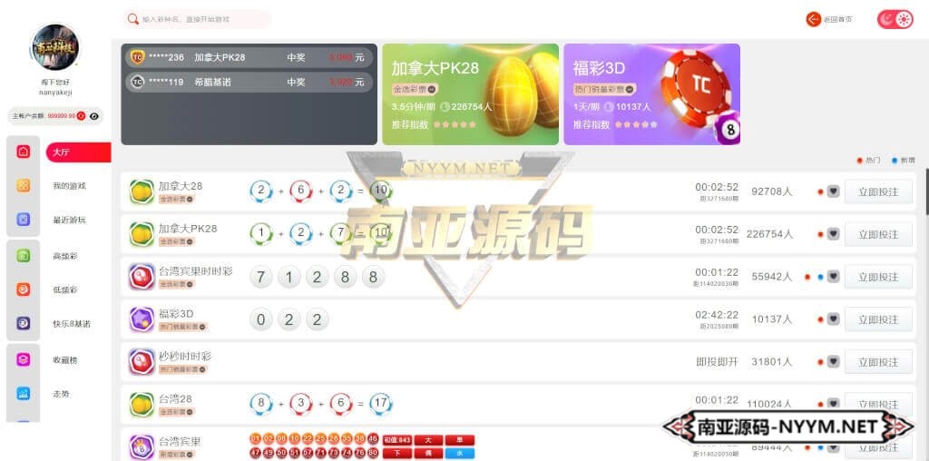 这套系统整合了不少彩票和小游戏,技术支持和服务也到位,一般在区域性或者海外彩票项目上用得比较多。