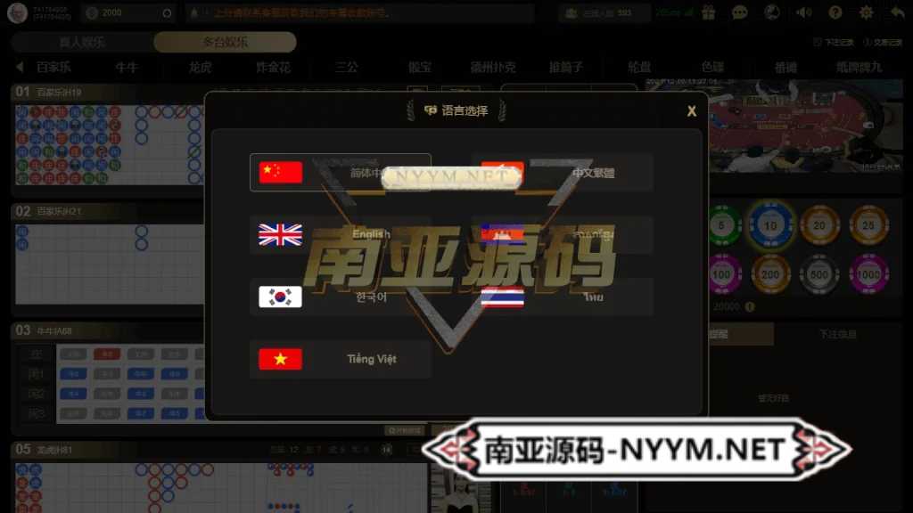 NANHAI 娱乐平台源码支持多语言结构,当前可配置语言包括: