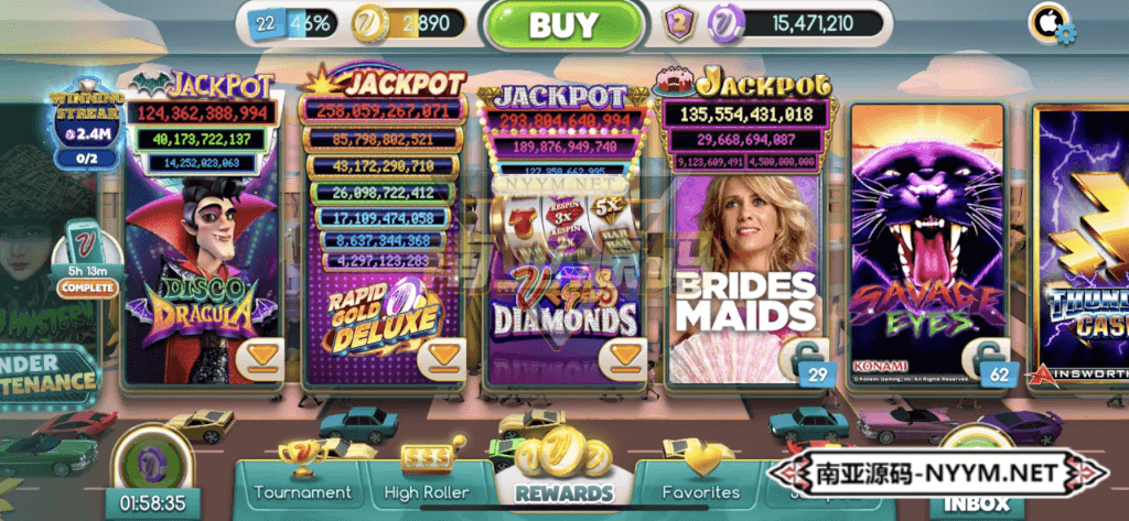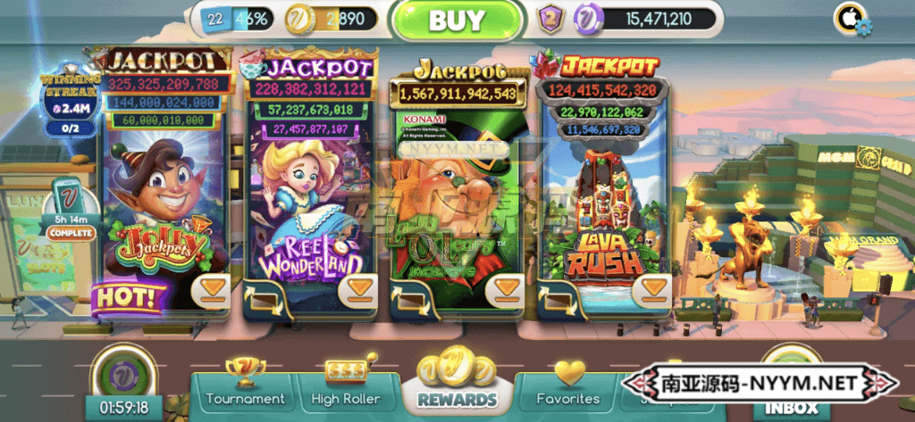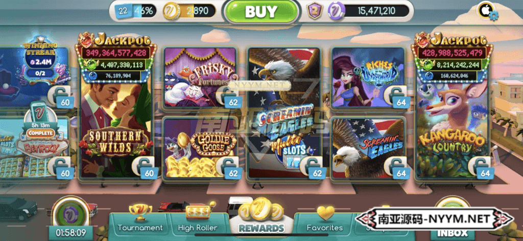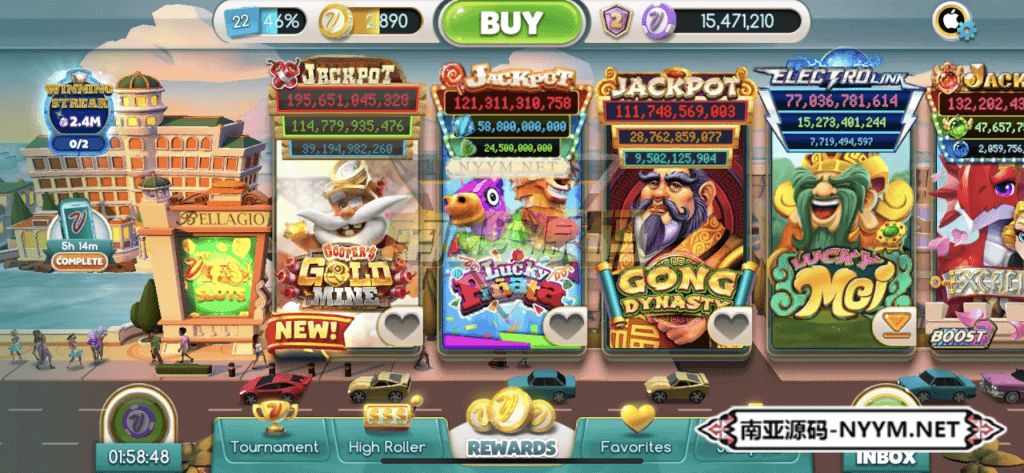 整体美术风格以 欧美卡通与拉斯维加斯风格元素 为主,画面表现偏向轻松休闲,适合: