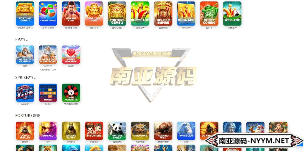 SPIRIT游戏源码、PG游戏源码、jili游戏源码、PP游戏源码、FORTURE游戏源码、lazer游戏源码、棋牌游戏等,有部分为自研前端!