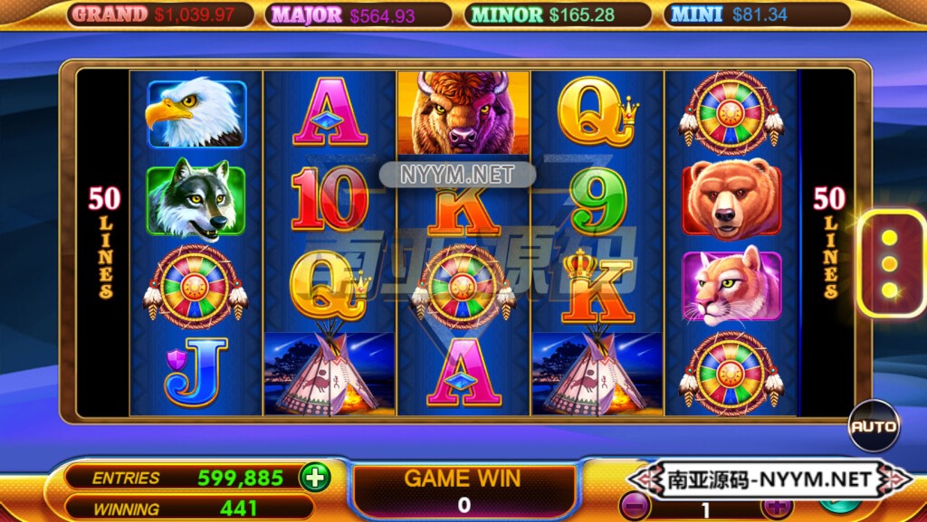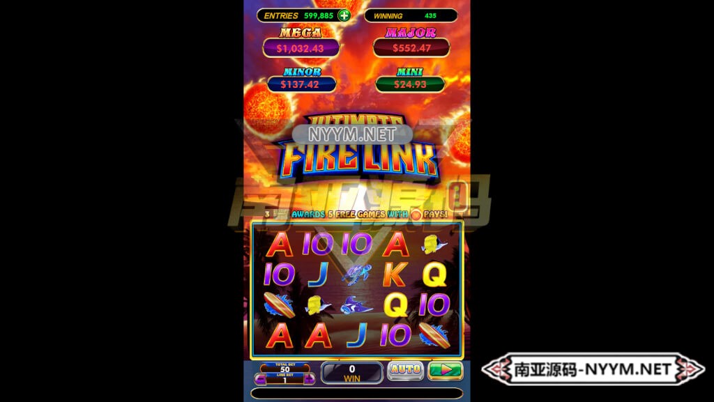 游戏是5×4的网格,50条固定线路。有10种基础符号,语言是英文的,绝对国际范儿。玩法就是经典的老虎机,上手特别容易。