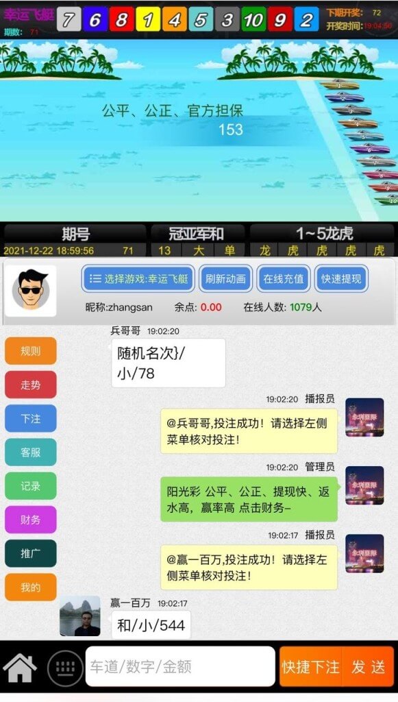 管理员可通过后台管理房间、用户、开奖逻辑等内容: