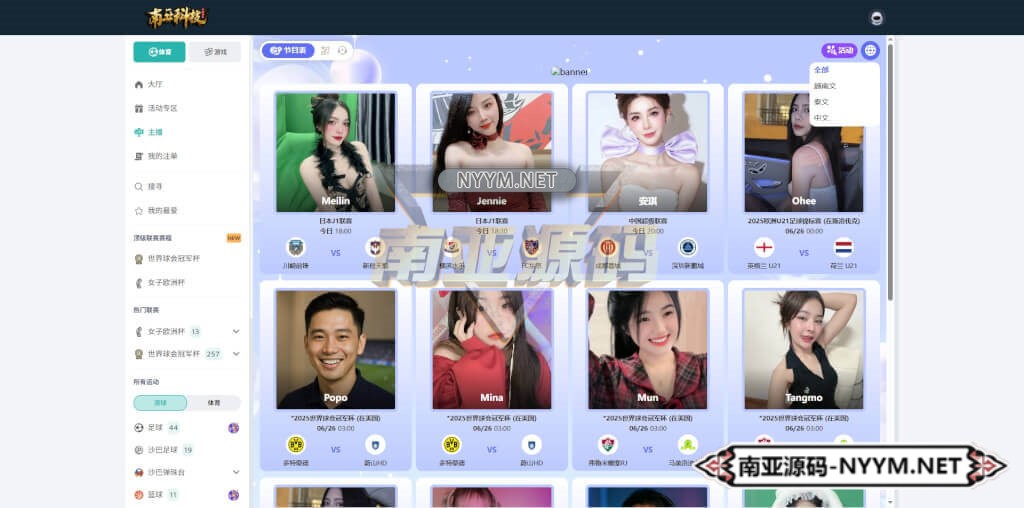 • 足球、篮球、网球、电竞等全球赛事