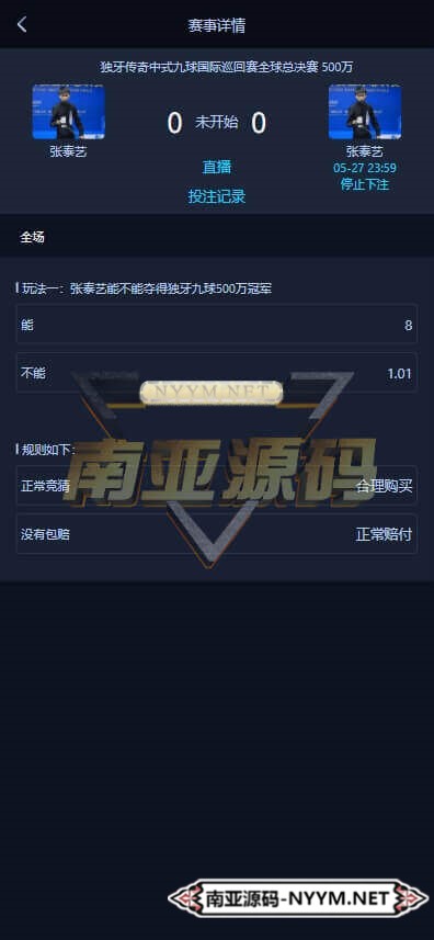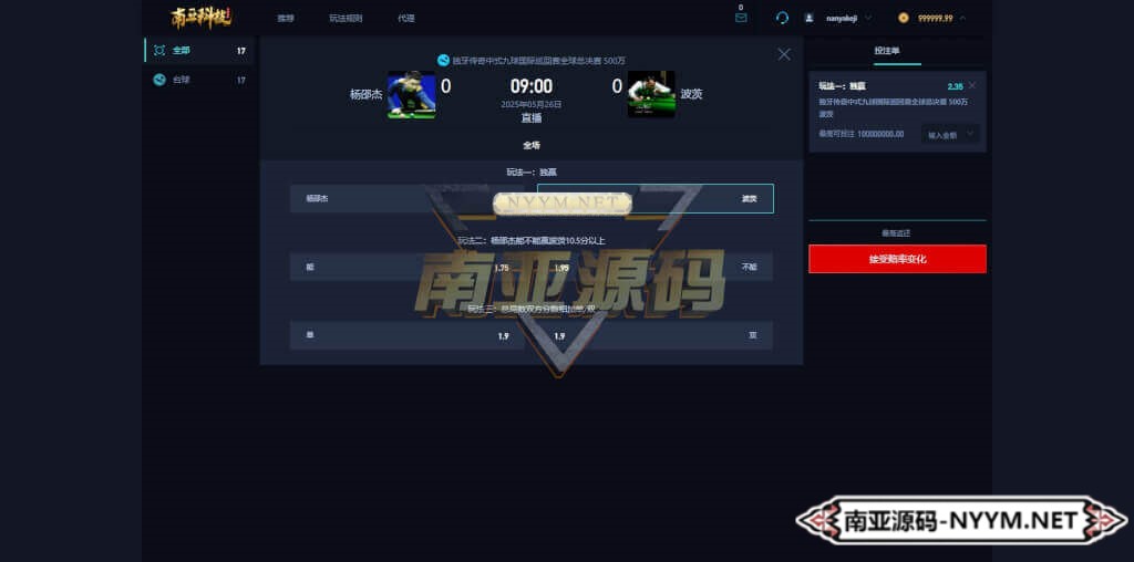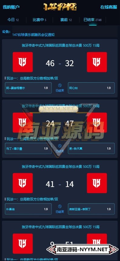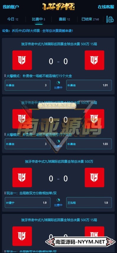 - 适合搭建台球赛事平台、外围下注系统或体育竞猜源码二次开发