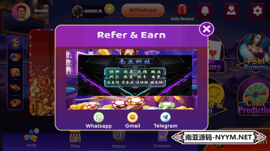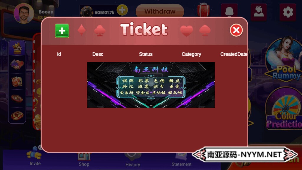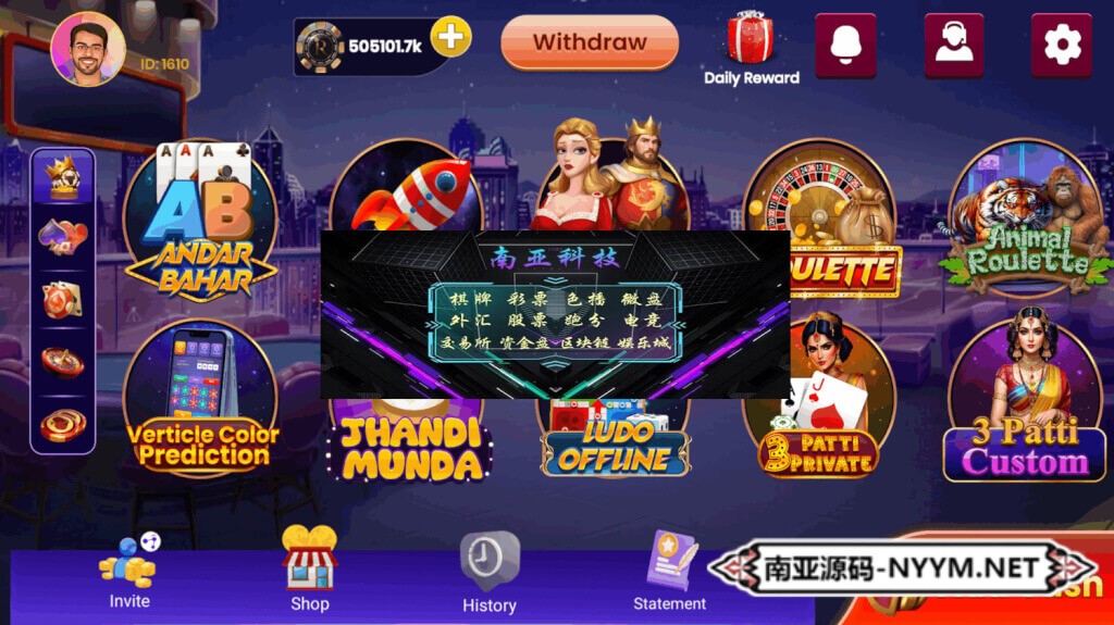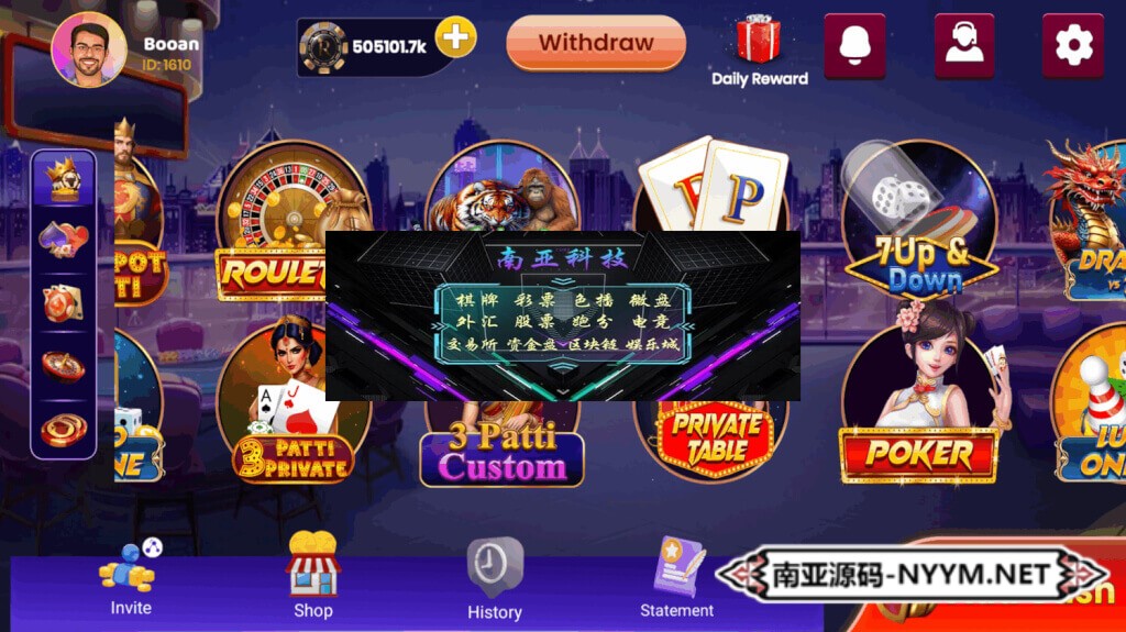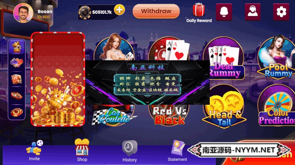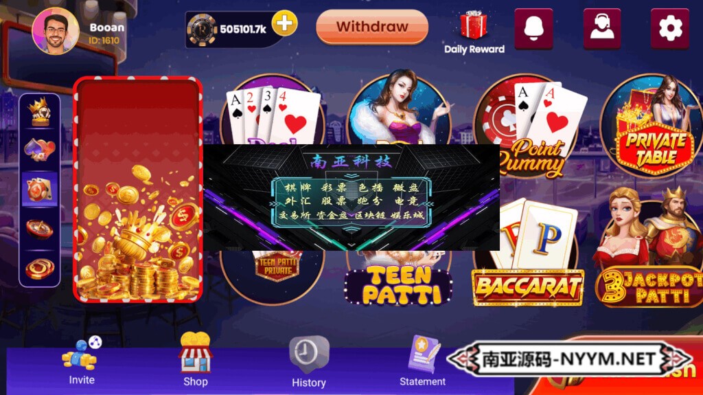 • 游戏核心:Rummy(13张玩法)、Teen Patti、扑克、龙虎斗